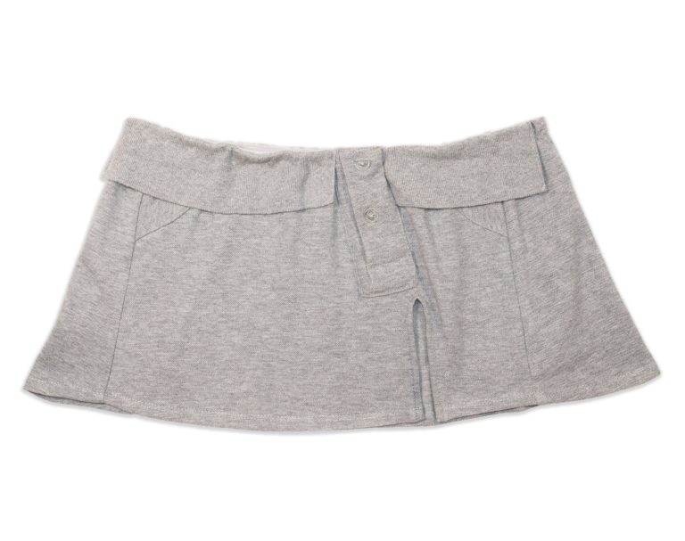Short skirt made from an upcycled grey polo shirt. Finished with an elastic waistband.
