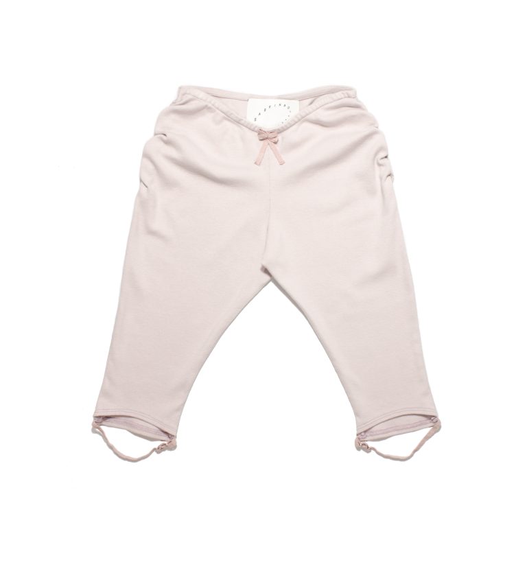 Fitted leggings in a dusty pink jersey fabric. Detailed with ruching at the hips and a decorative bow at the center front. Finished with an elastic waistband and adjustable straps at the hem.